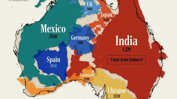 The infographic below, via Visual Capitalist’s Pallavi Rao, puts its staggering scale in context by showing how many familiar nations could sit comfortably inside its outline.
