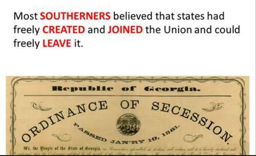 Why is this lie told to school kids? For all the obvious reasons. The main ones being to portray the South as the bad guy and to portray the North as the good guy. This squelches questions about forcing people into a “union” they’d rather not be part of. How many people would consider getting married if it were made clear to them they could never (no matter what) leave the marriage?