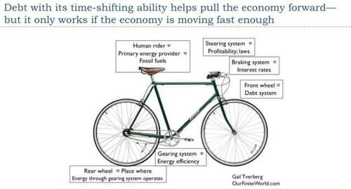 Once the inexpensive-to-extract energy supply is depleted, economies tend to add an increasing amount of debt, in an attempt to pull the economy forward. It seems to me that a major limit on the system comes when an economy slows down so much that it can no longer repay its debt with interest.
