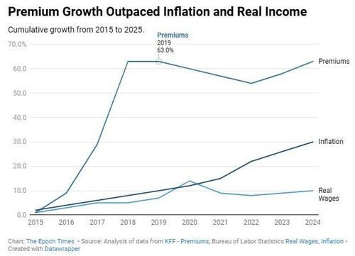 Obamacare premiums shot back up, according to data reported by KFF, rising more than 13 percent in three years.