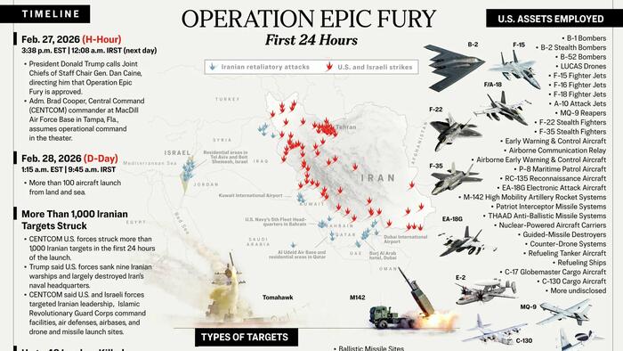 When Trump issued the “go order” at 3:38 p.m. Feb. 27, it was just after midnight Feb. 28 in Tehran. In the nearly 10 hours between H hour and the actual launch of the attack, Caine said, “in the region, every element of the joint force made their final preparations.”