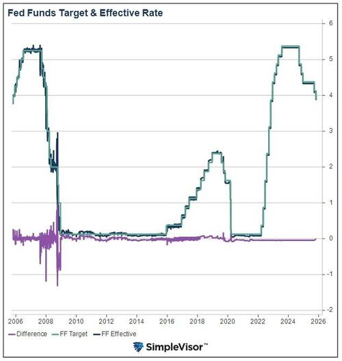 As the graph below shows, the Fed is incredibly effective at controlling the rate.