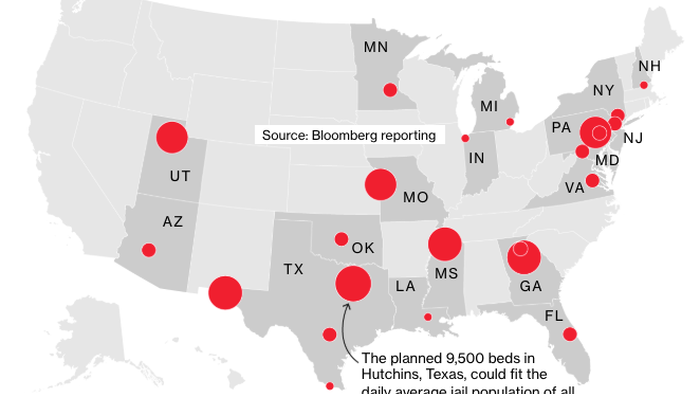 ICE expects to hold between 1,500 and 10,000 detainees in each of these 23 warehouses at a time.