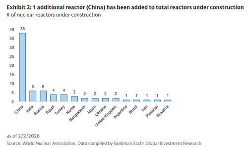 When actual construction of the reactor breaks ground, the US will finally appear on this chart of countries which currently have nuclear reactors under construction, where China is at 38, Russia and India at 6… and the US is below Iran and Pakistan with 0.