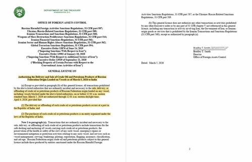 That’s what happened late on Thursday, when the US issued a general license to allow for some Russian oil sales to India, giving the nation more options to purchase fuel as an escalating conflict in the Persian Gulf cuts off a major producing region.
