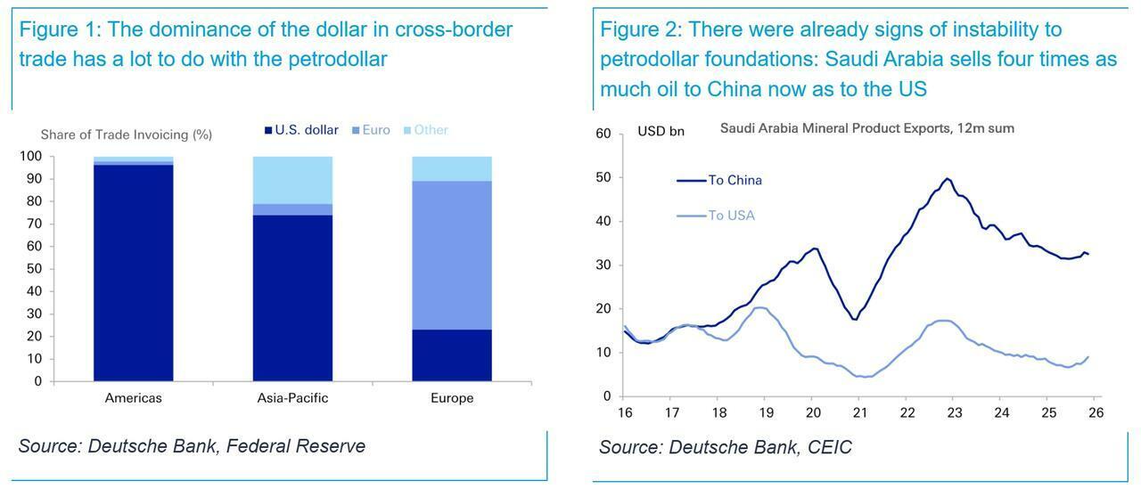 In a note on Tuesday, Deutsche Bank said the conflict is testing the Petrodollar’s role as the currency for global oil trade, with one long-term consequence being a potential shift toward the yuan.