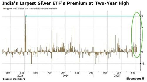 Amid the unprecedented shortage in the physical silver market (that we detailed here), a number of Indian asset managers have halted all new investments into Silver ETFs.