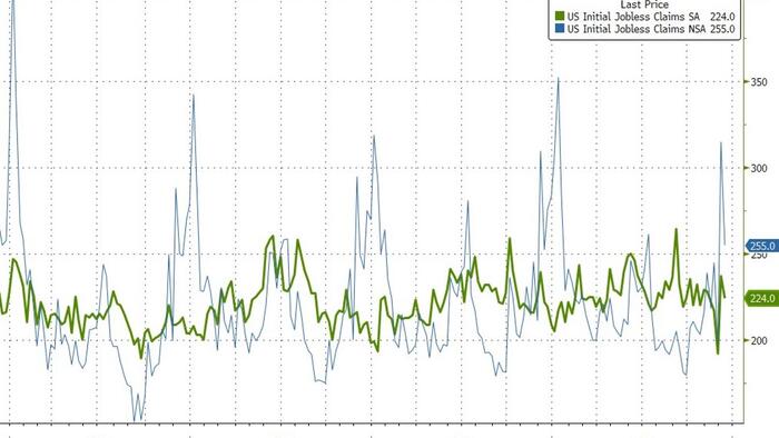 After the Thanksgiving Week debacle, the number of Americans filing for jobless benefits for the first time remains back in the same – very low – range it has been in for the last four years at 224k…