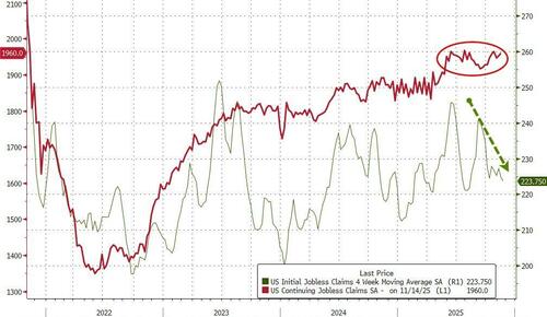 Continuing jobless claims ticked higher – remaining above the 1.9 million level, near its highest since Nov 2021