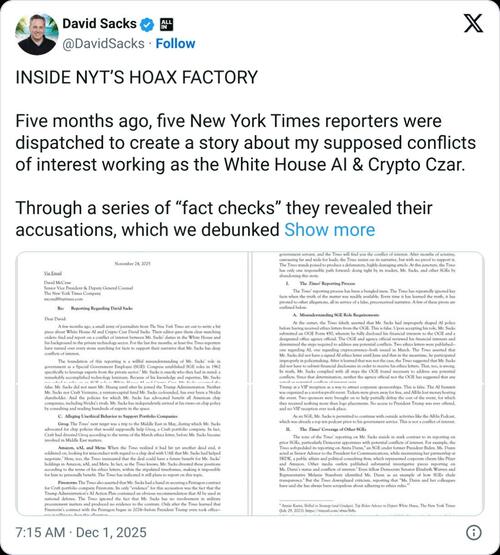 ‘Inside NYT’s Hoax Factory’: Trump’s AI/Crypto Czar Dismisses Hit-Piece As ‘Nothing Burger’