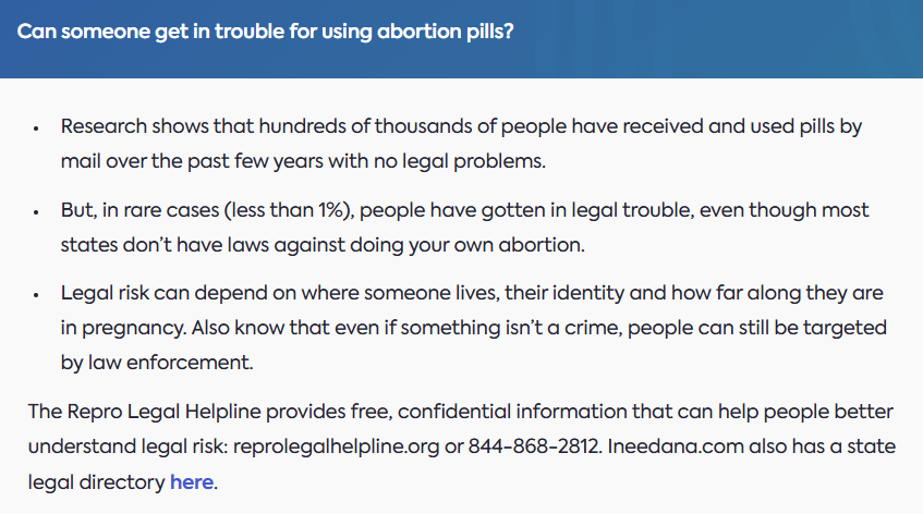 Plan C Pills advises visitors on potential legal risks to buying abortion pills in certain states