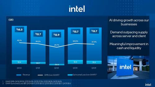 First, the historical data which was not terrible, but certainly not great. This is what the once glorious chipmaker reported for Q4:
