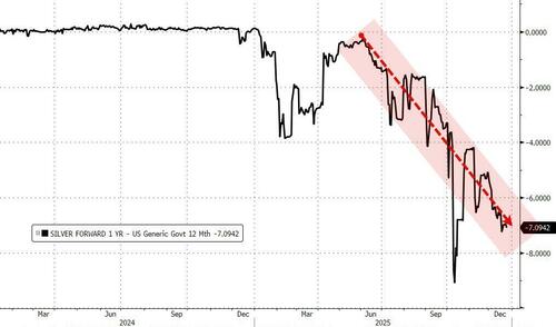 Figure 1 – One Year Silver Swaps Minus One Year One Year US Interest Rates at Dec 23, 2025; source: Karel Mercx x.com
