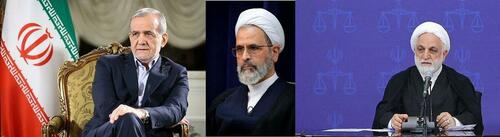 Iran’s interim leadership council: President Masoud Pezeshkian, Head of Judiciary Gholam-Hossein Mohseni-Ejei, and member of the Guardian Council and Assembly of Experts Ayatollah Ali Arafi.