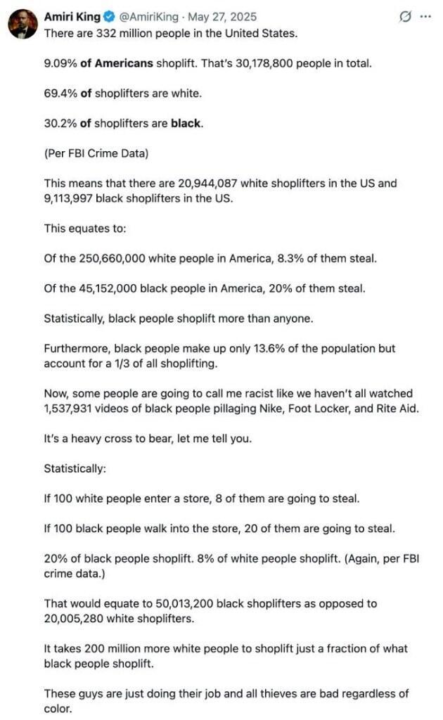 This means that there are 20,944,087 white shoplifters in the US and… pic.twitter.com/0z4EyGVXZG