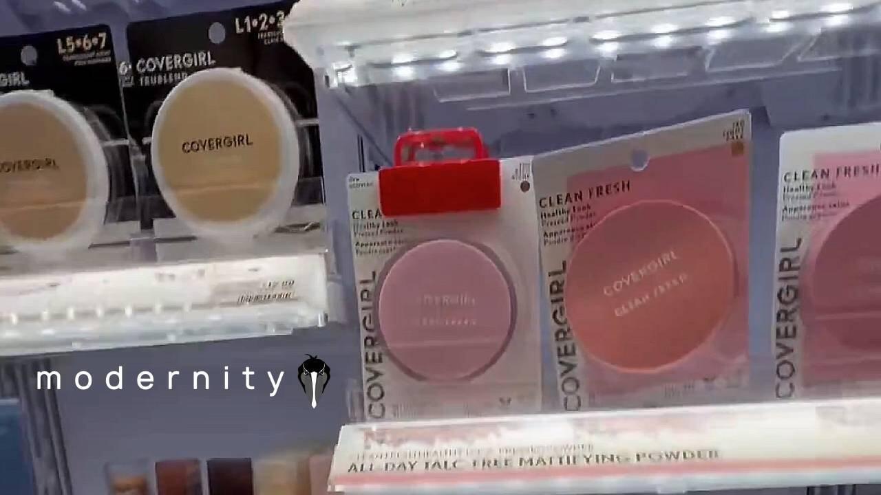 She films the makeup isle and shows there are no security devices on the lighter skin shades, but if you go into the darker makeup shades they all have security locks