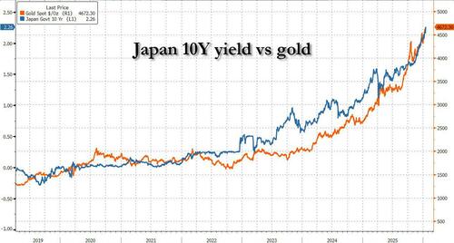 Making sure inflation rises even more, Takaichi’s administration plans a new national security strategy this year after deciding to hasten a military build-up that will lift defence spending to 2% of GDP, a sharp break from decades in which Japan capped such outlays at around 1%. Translation: even more spending and even more debt monetization by the BOJ.