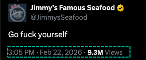 Jimmy’s Famous Seafood’s response on X went viral, with more than 9 million views. The restaurant, which also sells crab cakes online, saw such an explosion in website traffic that its backend crashed.