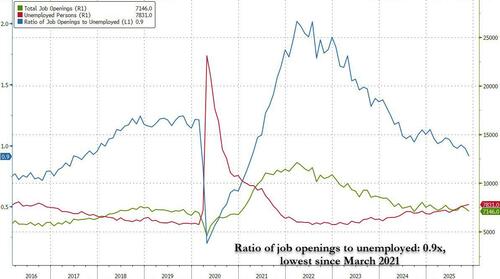 … and translating into a 0.9 ratio of job openings to unemployed workers, the first sub-1.0x print in 4 years.