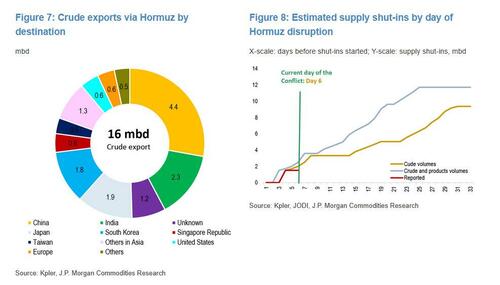 Kuwait is likely next to curtail upstream supply following today’s run cuts: based on current flows, JPM estimates about four days until shut‑ins begin, or up to nine days if product storage remains available. Beyond Kuwait, the first signs of supply constraints in the UAE should emerge next week.