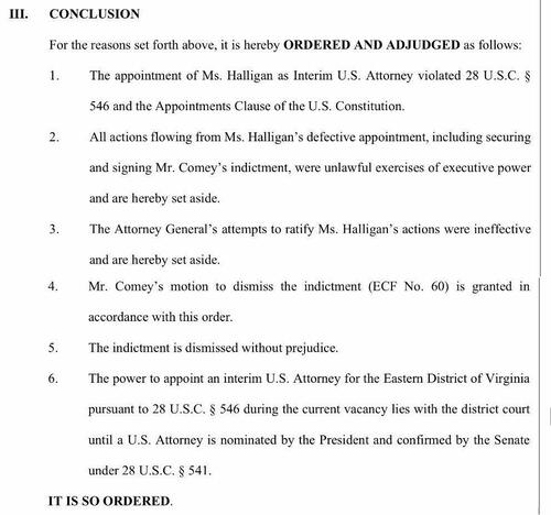 A federal judge just DISMISSED James Comey’s case without prejudice because of Lindsey Halligan’s unlawful appointment.