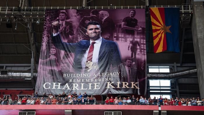 People take part in the Building a Legacy: Remembering Charlie Kirk Memorial event at the State Farm Stadium in Glendale, Ariz., on Sept. 21, 2025. Madalina Kilroy/The Epoch Times