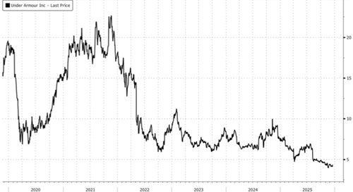 But it wasn’t just Baltimore City’s horrendous leadership of Democratic kings… The UA brand has lost traction with consumers, and its stock has imploded as the company works on a turnaround plan.