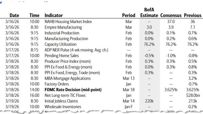 Beyond the Fed, this week’s incoming data is unlikely to materially alter the tone of the meeting. February’s industrial production today is expected to rise by 0.3%, slower than January’s 0.7%, largely due to softer utility output, though oil and gas extraction will be worth monitoring. Otherwise, the regional manufacturing surveys from New York and Philadelphia could reflect some drag from geopolitical uncertainty, with particular attention on capital spending components. And given the recent labor market volatility, Thursday’s initial jobless claims will take on added importance as they fall within the March employment survey window.