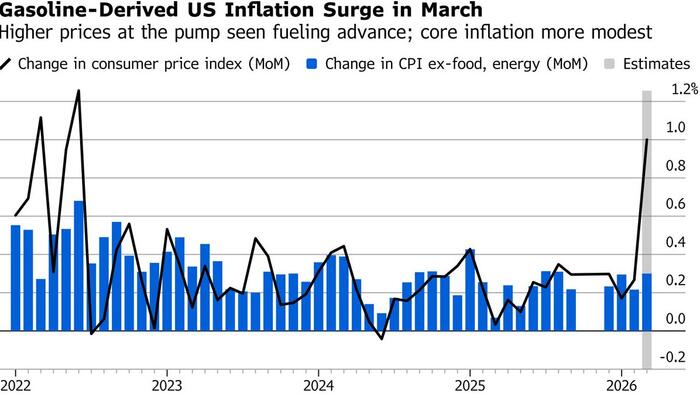 The key highlight of this week’s data docket will be Friday’s March CPI where the impact of the largest energy supply shock since the 1970s will certainly be on full display. Deutsche Bank’s expectations are for a roughly 25% increase in gasoline prices to yield a 0.95% monthly gain in headline CPI (vs. +0.27% in February), well above the bank’s forecast for the gains in core (+0.33% vs. +0.22%).
