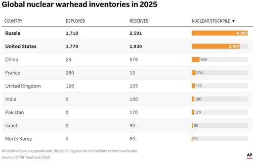 Trump’s Truth Social statement claimed the US has a larger nuclear stockpile than Russia…