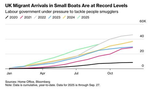 The UK recorded its largest-ever migrant crossing on a single vessel this weekend, according to Bloomberg – piling further pressure on Prime Minister Keir Starmer as his Labour Party convenes for its annual conference in Liverpool.