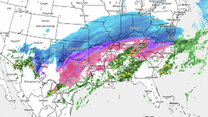 The latest snowfall predictions stretch from Texas to the Northeast.