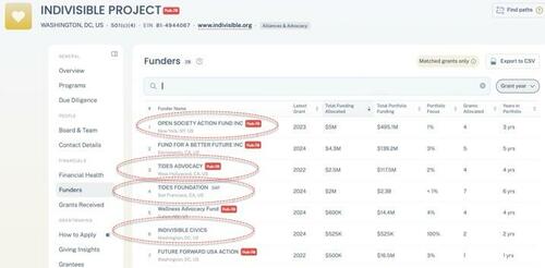 As for Indivisible Project, the typical foundations that fund chaos nationwide also fund this entity.