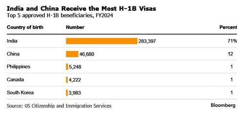 The Trump administration amped-up its nationalistic labor market approach by imposing a $100k annual fee on companies applying for new H-1B visas to bring skilled workers into the country. The FT says the cost to US employers could be $14bn. The move also sets up further potential misgivings between the USA and India, which is the country of origin for more than 70% of H-1B visa holders.