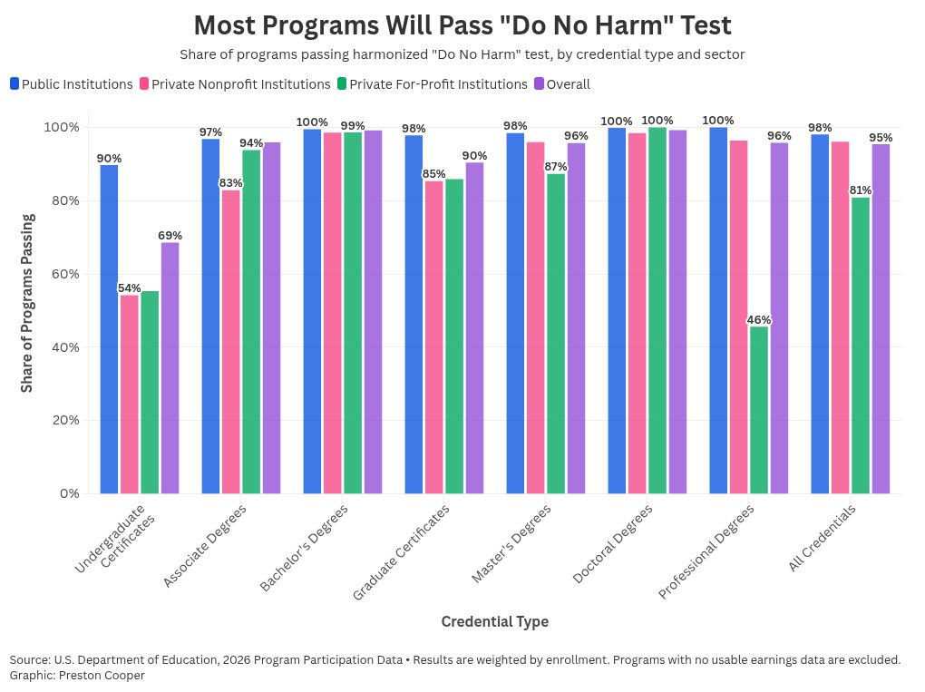 Last week, the Education Department convened a negotiated rulemaking committee to draft regulations to implement this provision of OBBB. (For more on the regulations that emerged from that committee, see my companion post.) To aid the process, the Department released a preliminary dataset—officially the 2026 Program Performance data; unofficially the One Big Beautiful Dataset—including nearly 50,000 degree and certificate programs and whether they are likely to pass the new accountability test.
