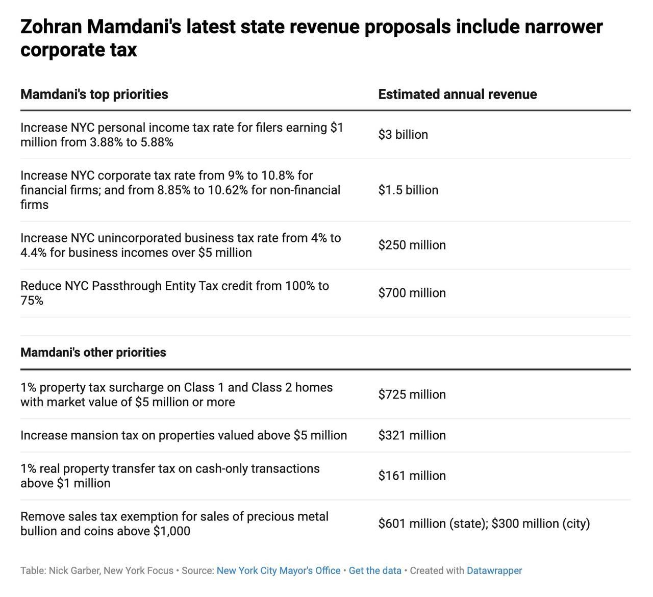 Mamdani is also proposing to scale back the Pass-Through Entity Tax credit, which currently allows certain business owners to use company tax payments to fully offset what they owe in personal income taxes. Limiting that credit to 75 percent of its value would produce roughly $700 million a year, according to city estimates. The mayor continues to advocate for raising the local income tax rate on residents earning more than $1 million annually, a measure projected to bring in about $3 billion each year.