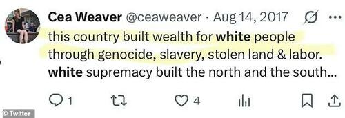 Woke New York City Mayoral Aide Cea Weaver burst into tears on Wednesday morning when confronted about her anti-white tweets and hypocrisy (Daily Mail)