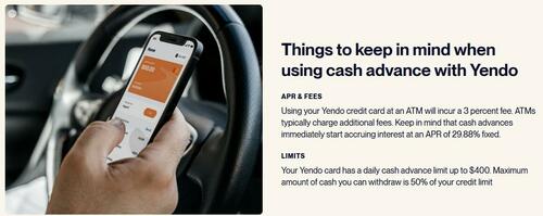 The startup, Yendo Inc., makes it even easier to squeeze blood from that stone. After signing up, the company issues the borrower a credit card – which incurs an additional 3% fee if used at an ATM to pull cash out.