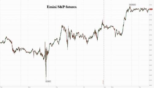 US stock futures wavered early on, repeating a pattern of the past two sessions that gave way to extended rallies. There was no pause for Gold however: the yellow metal’s unprecedented rally pushed higher on efforts by China to bolster its role in global bullion markets. Bullion powered beyond $3,780 an ounce, putting the metal on track for its best month since 2020. The rally gained fresh momentum on Tuesday after Bloomberg reported that the People’s Bank of China is looking to be a custodian of sovereign reserves, courting friendly countries to buy bullion and store it within its borders.
