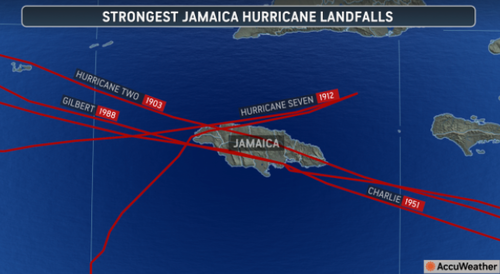 NHC records dating back to 1850 show that Jamaica has never recorded a direct landfall from a Category 4 or 5 hurricane. However, four Category 3 storms have made direct landfall: in 1903, 1912, 1951, and 1988.