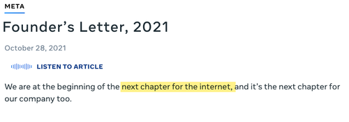 In 2021, Zuckerberg told investors in a founder’s letter that the metaverse marked “the beginning of the next chapter for the internet — and the next chapter for our company.”