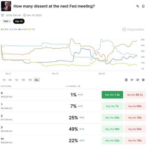 Hey @AskPolymarket what are the odds December FOMC meeting will have 4 dissenters or more.
