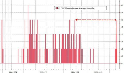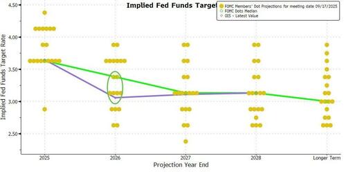 In fact, arguably 2026 dots show a very slight dovish tilt from September (with the number of Fed voters wanting no cuts or a hike down from 8 to 7…