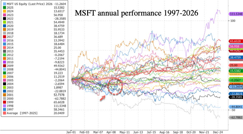 Until early April, Microsoft shares were on track for their worst start to a year in Bloomberg data going back to 1997.