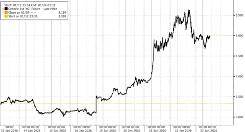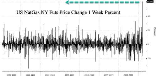 US natural gas futures surged as much as 75% over the past week, well above $5/mmBtu, driven by sharply colder weather forecasts (comparable to the 2021 Uri storm that paralyzed Texas’ power grid), ongoing production freeze-offs, and a vicious market trap for bears that unleashed epic short covering.