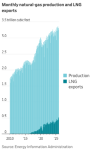 Due to the shale drilling boom, U.S. natural gas production continues to reach new records, and the United States is now the world’s largest exporter of liquefied natural gas, but manufacturers still are cut off from natural gas supplies during extreme weather days due to insufficient pipeline capacity because priority goes to residential customers when demand rises. That is also why the Northeast had to rely on oil for 40% of its electricity generation during Arctic storm Fern last month. Due to long-term supply deals guaranteeing space on pipelines, overseas buyers are also not cut off from supplies.