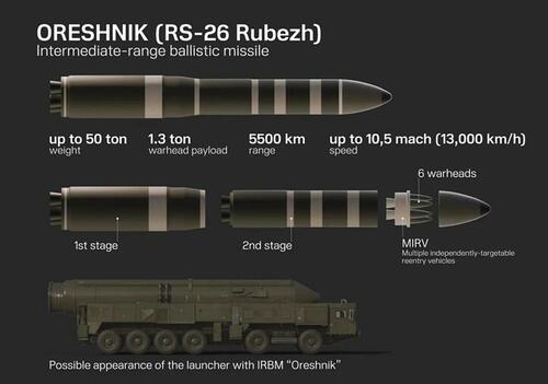 In the remarks he specifically invoked Russia’s hypersonic ‘Oreshnik’ missile, which has been launched on Ukraine at least two known times – one just a week ago – and is capable of reaching speeds exceeding Mach 10.