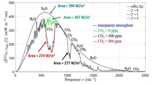 Carbon Dioxide saturation in the atmosphere, p. 93: Atmospheric CO2 has already reached 99 percent of its potential saturation level for absorbing warmth. More CO2 in the atmosphere will have virtually no impact on future temperatures, as near-saturation for absorbing warmth has already occurred.