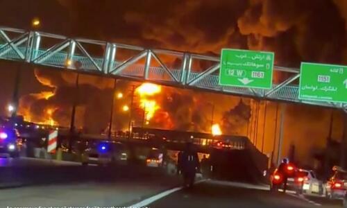 JUST IN 🇮🇷🇺🇸: The fires in Tehran keep burning into the morning after last night’s airstrikes on the oil depots.