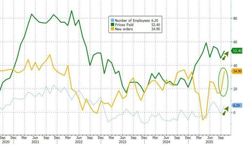 Amid the desert of macro data due to the shutdown, traders are reaching for anything to get a sense of the US economy and this morning’s Empire State Fed Manufacturing Survey offers hope for the future.